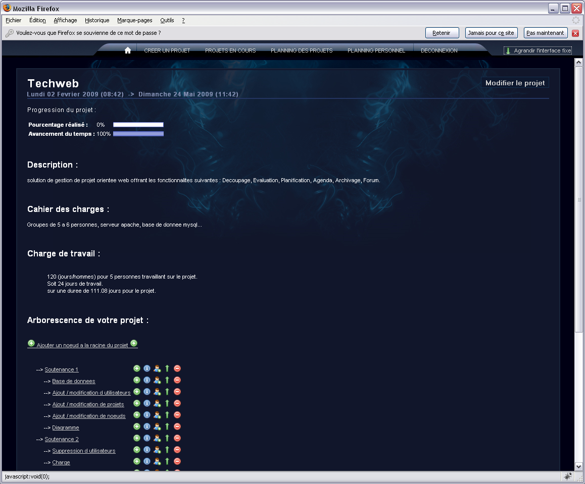 Ce projet, que nous avons eu à faire en deuxième année, consistait en la réalisation d'un site web de gestion de projet.